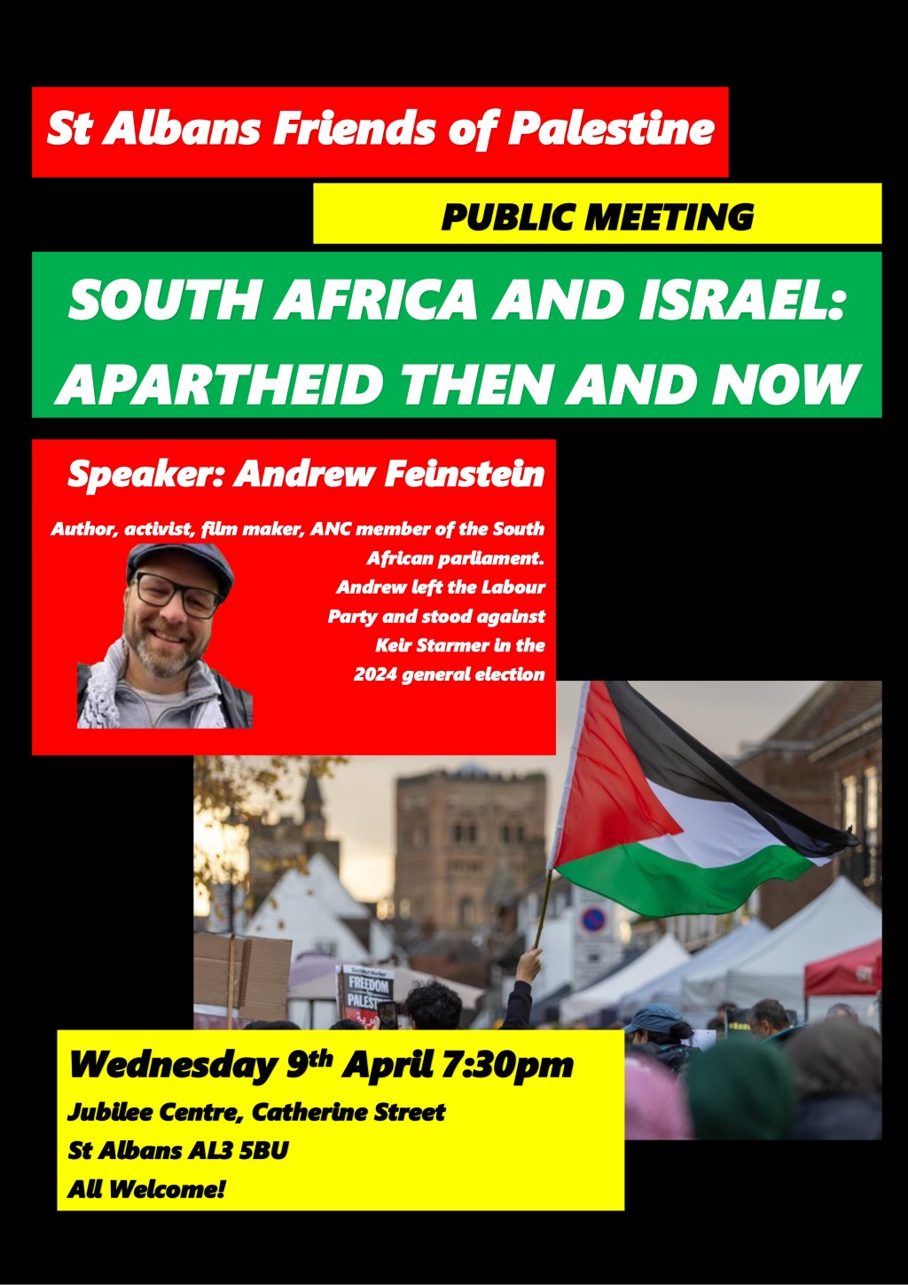 All are warmly invited to this event organised by St Albans Friends of Palestine. No need to book!